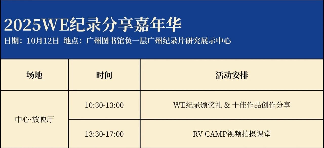 2025 WE纪录征片以“生活进行时”为主题,一共收到了161部投稿作品,其中的二十部作品脱颖而出进入终评。在10月5日至10月11日,我们也举行了终评入围作品展映和“观众选择奖”评选活动。本次颁奖典礼,将公布“2025WE纪录”十佳作品及观众选择奖的最终名单。欢迎各位读者前来,共同见证荣誉时刻。
