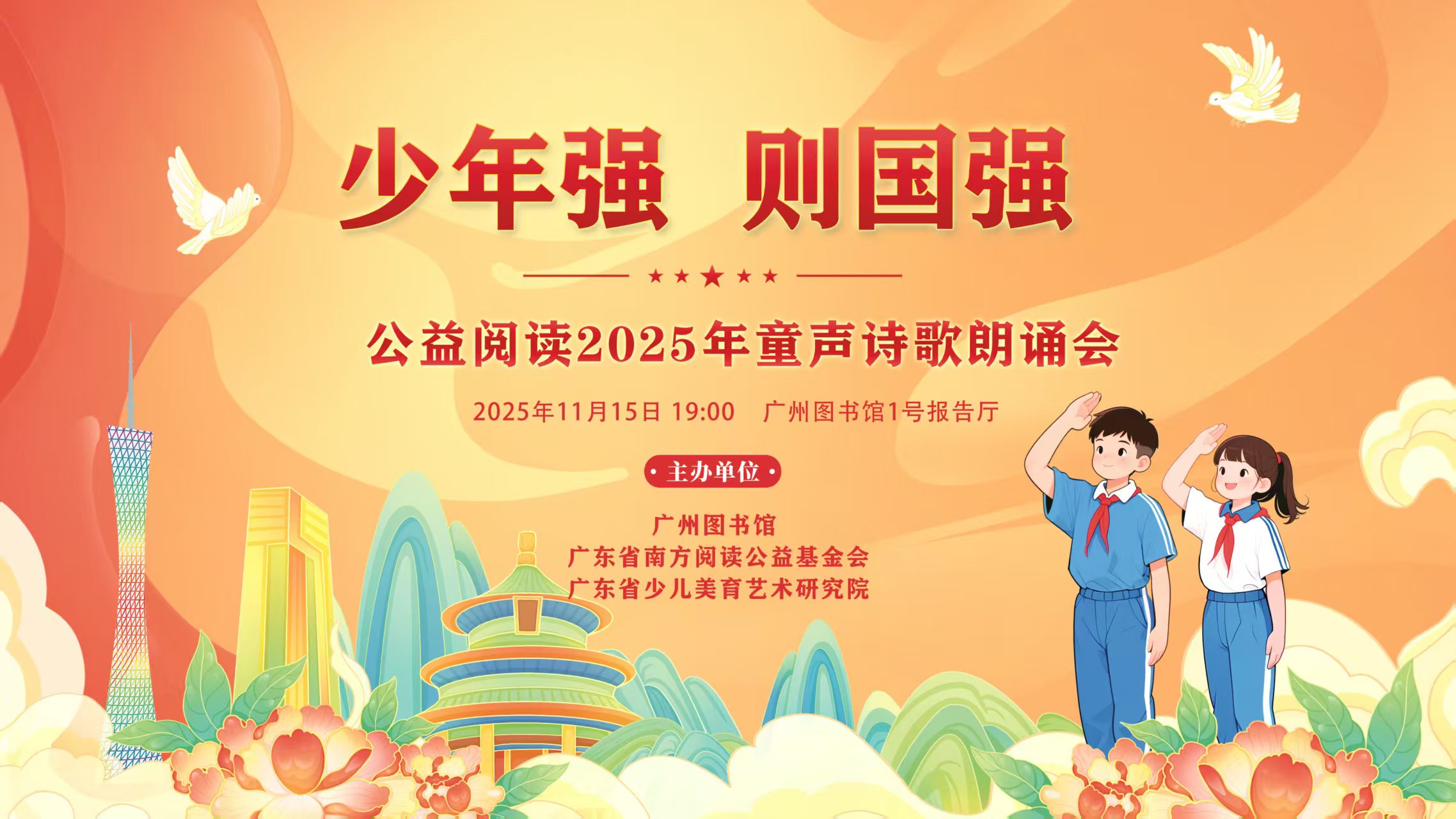 为铭记历史、传承精神,广州图书馆联合南方阅读公益基金会、广东省少儿美育艺术研究院,特别策划“少年强则国强——公益阅读2025年童声诗歌朗诵会”。??