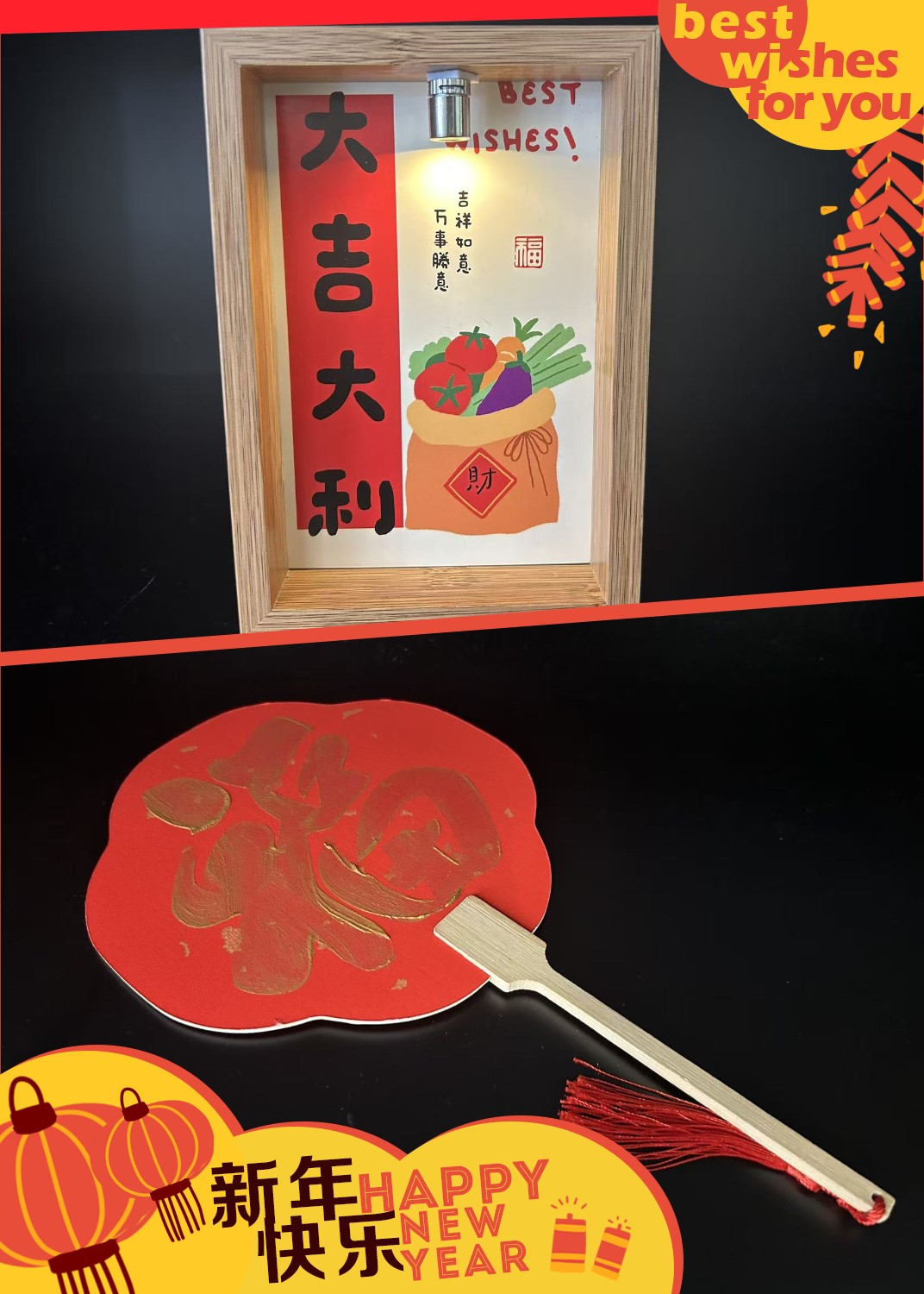 终极奖励!领取一份 “吉祥灯彩DIY材料盒”或拓印团扇(仅16份,先闯关成功先得,领完即止),现场亲手制作,点亮新年彩灯拓印新年祝福!亲手打造独一无二的新春纪念,把福气与巧艺带回家!