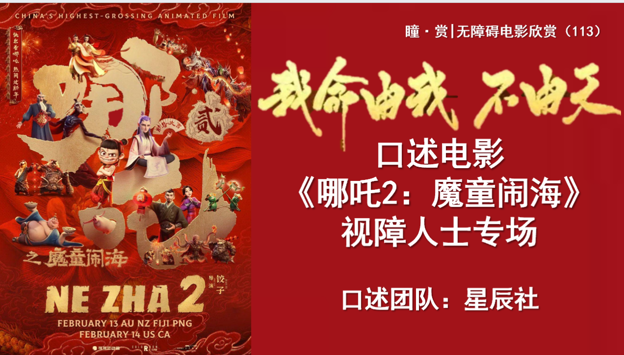 马年启新程,光影暖人心! 瞳・赏之无障碍电影欣赏第113期重磅上新,恰逢2026马年新春,《哪吒2》视障人士专属专场暖心启幕,以声为礼,贺岁同行!