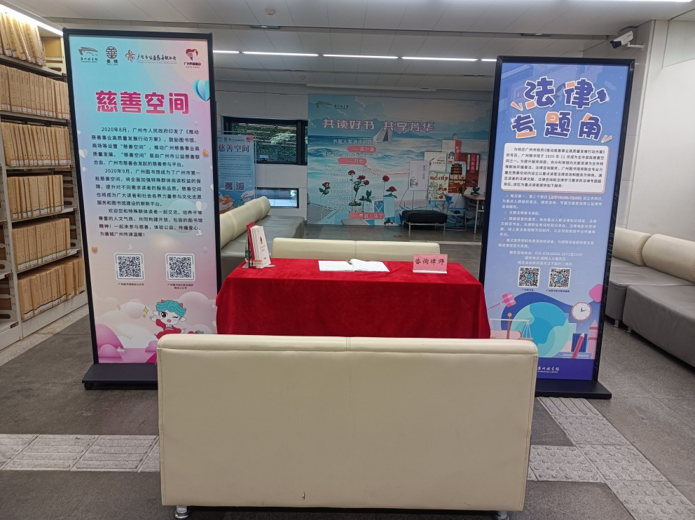为提升服务效能,充分利用馆内文献资源为全市特殊群体开展普法、法律咨询服务,广州图书馆慈善空间联合盈科慈善空间设立了公益法律咨询和服务为特色,旨在满足重点读者法律学习需求,解答法律咨询难题的法律专题角,并在每个月的第三个星期天上午10:00-12:00(以活动预告为准,如遇特殊情况会调整)为重点读者提供普法、法律咨询等公益法律服务,现场与你一起剖析难题、解释法律、提出建议、维护权益。