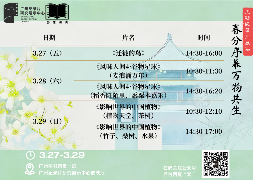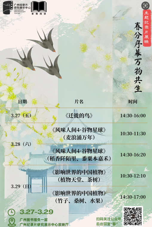 春分虽已渐渐远去,暖意却越发浓厚,趁着这般好时节,让我们共同走进本次自然回响主题纪录片展映。