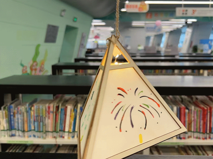 二、亲子家庭观看视频或PPT,发挥创意,画图、黏贴,组装灯笼;如有疑问,可咨询现场馆员老师或者志愿者同学;