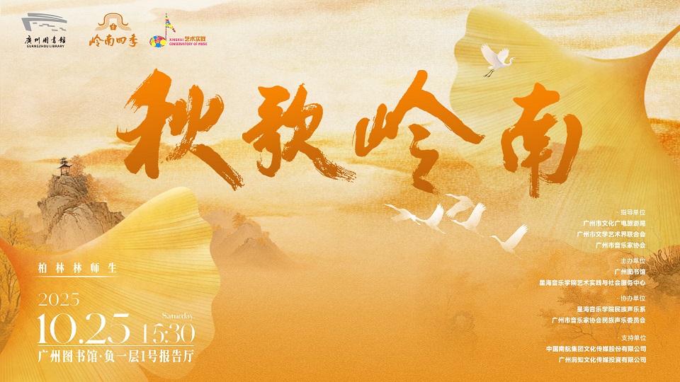“岭南四季”以“春咏羊城”、“夏舞粤风”、“秋歌岭南”、“冬蹈长空”4场音乐会的形式奏响岭南的四季华章;“秋歌岭南”以歌声展现中国之秋和岭南的自然风光、民俗风情和人文精神。本场音乐会涵盖古诗词歌曲、传统民歌和原创歌曲,用诗词和音乐唱响舞台的秋天。通过沉浸式的阅读新形式,为观众带来秋天的心灵体验。