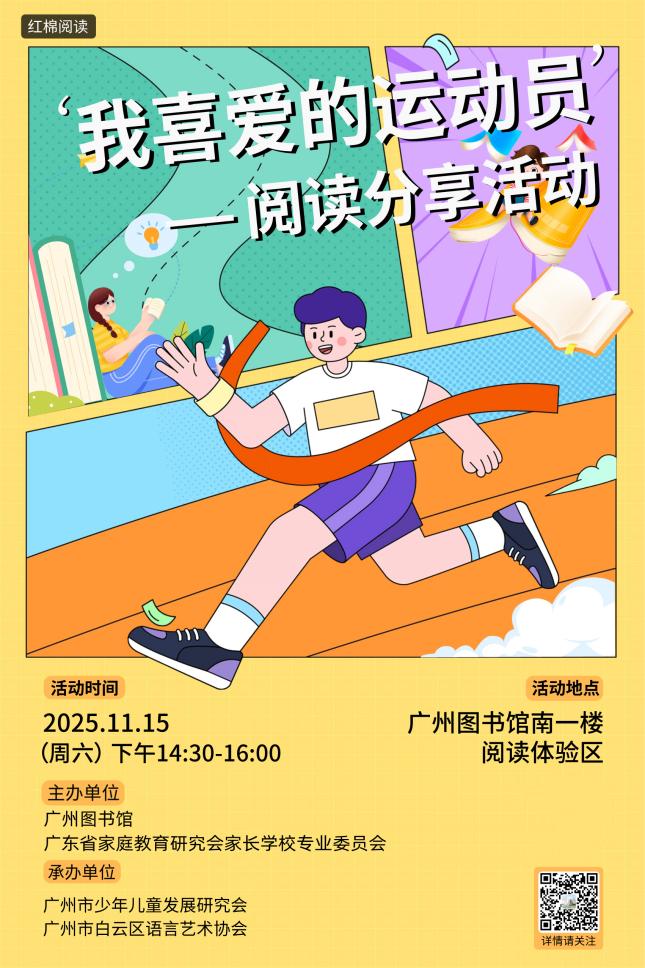 广州图书馆学习强国馆举办“我喜爱的运动员”阅读分享会,为所有体育爱好者和阅读爱好者搭建一个交流的平台。我们希望通过分享那些激励人心的运动员传记、报道和故事,引导大家:深入阅读,汲取精神力量,分享与连接,收获新的视角与感动。
