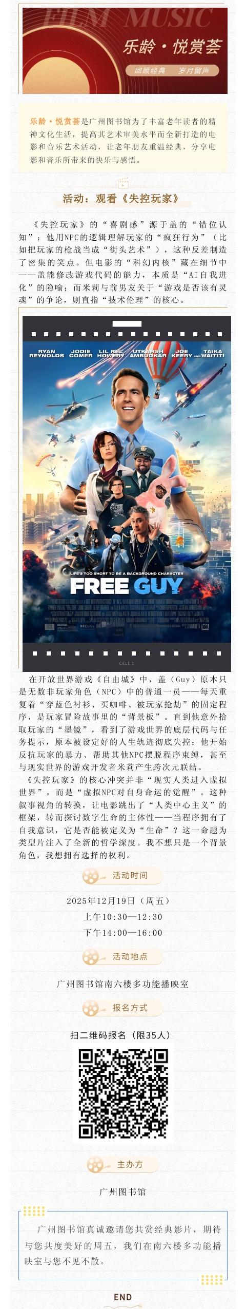 乐龄·悦赏荟丨电影《失控玩家》鉴赏