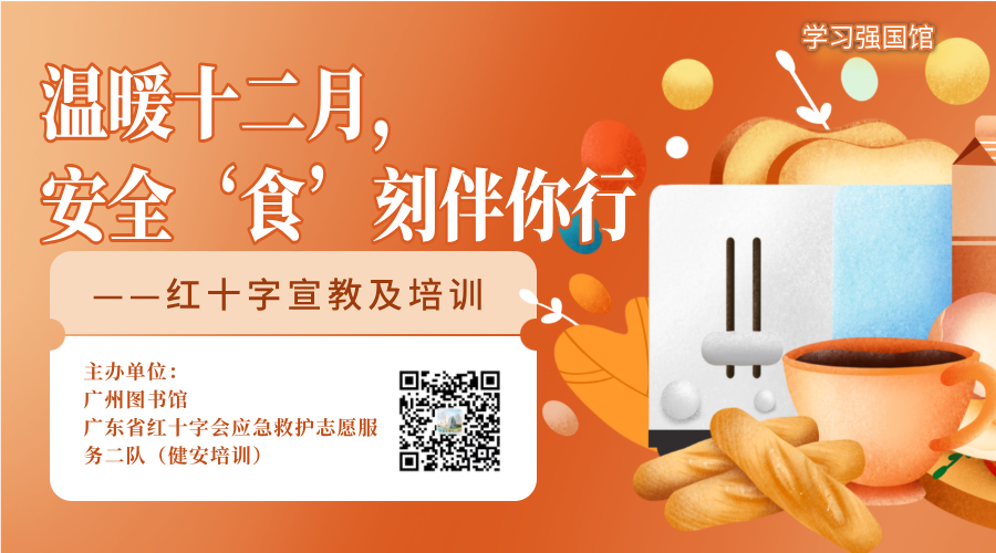 为普及应急救护知识,提升公众应对突发状况的能力,广州图书馆继续携手广东省红十字会应急救护志愿服务二队,在南一楼阅读体验区推出“温暖十二月,安全‘食’刻伴你行”红十字宣教及培训系列活动。让我们用知识与技能,为岁末的平安与健康保驾护航!