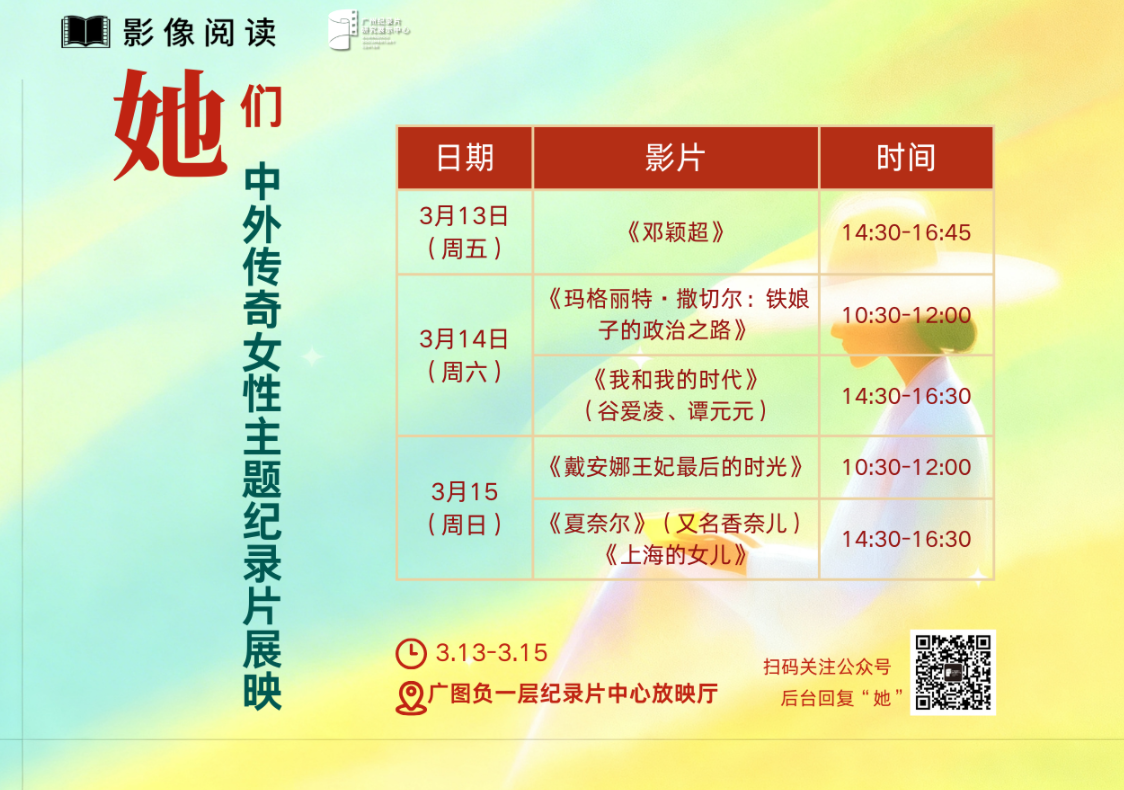 为致敬这些跨越国界、穿越时代的女性力量,我们特别推出“她们 —— 中外传奇女性主题纪录片展映”。本次展映汇集《邓颖超》《玛格丽特・撒切尔:铁娘子的政治之路》《我和我的时代》《戴安娜王妃最后的时光》《夏奈尔》《上海的女儿》六部经典纪录片,以真实影像为媒介,走近那些影响世界的女性身影。在这里,你将看见信仰与坚守、独立与觉醒、勇气与温柔、创造与传承的力量。她们的故事,不仅是一段段传奇,更是一面面镜子,照见女性的无限可能,也照亮每一个普通人前行的路。